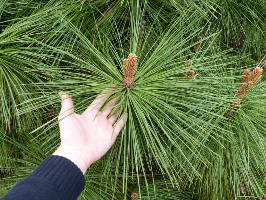 Необычная, длинная темно-зеленая хвоя. 15-20 см длинной, растет медленно.